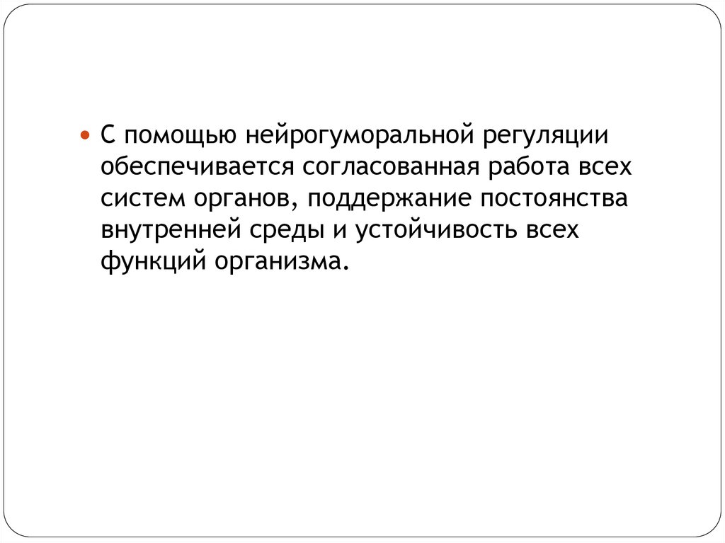 С помощью нейрогуморальной регуляцииобеспечивается согласованная работа всех