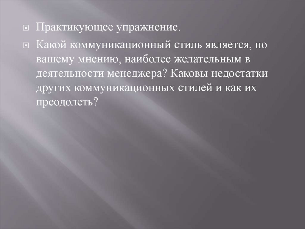 Практикующее упражнение.Какой коммуникационный стиль является, по