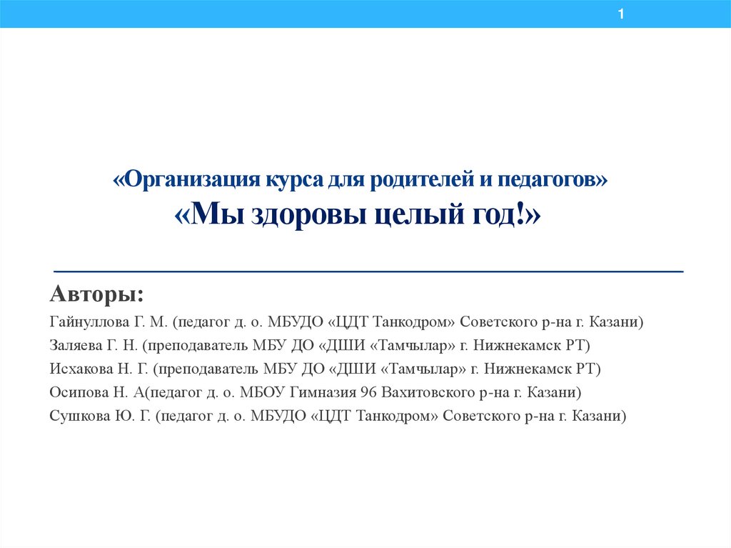 1. «Организация курса для родителей и педагогов» «Мы здоровы целый год!»