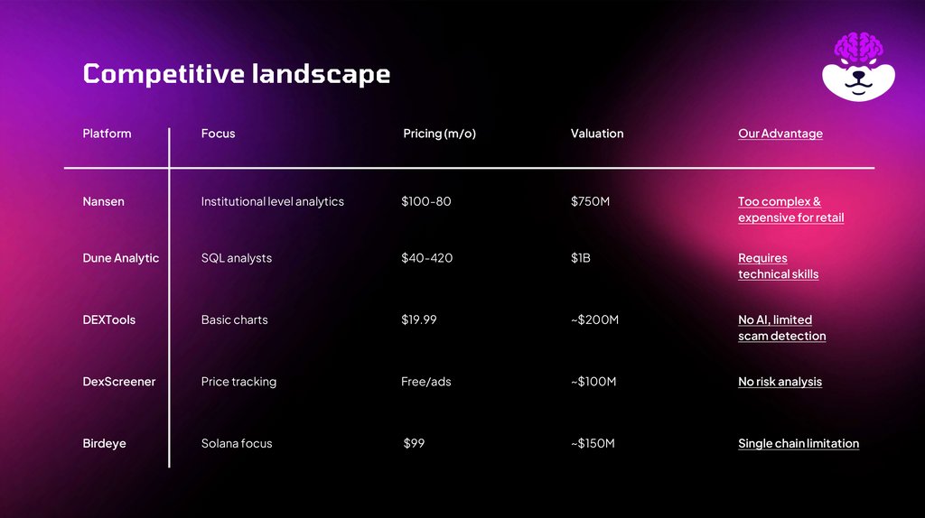 Problem● $500M+ lost to rug pulls in 2024 – Average victim loses $151,000 ¹