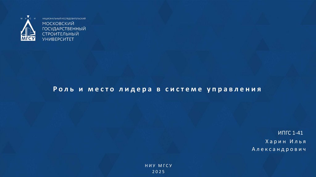 Стили лидерства в управленииНИУ МГСУ