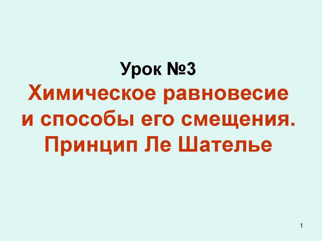 Урок №3Химическое равновесие