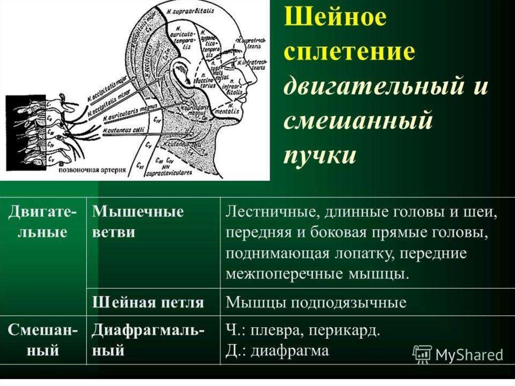 Иннервирует кожу и мышцы шеи, груди, живота и