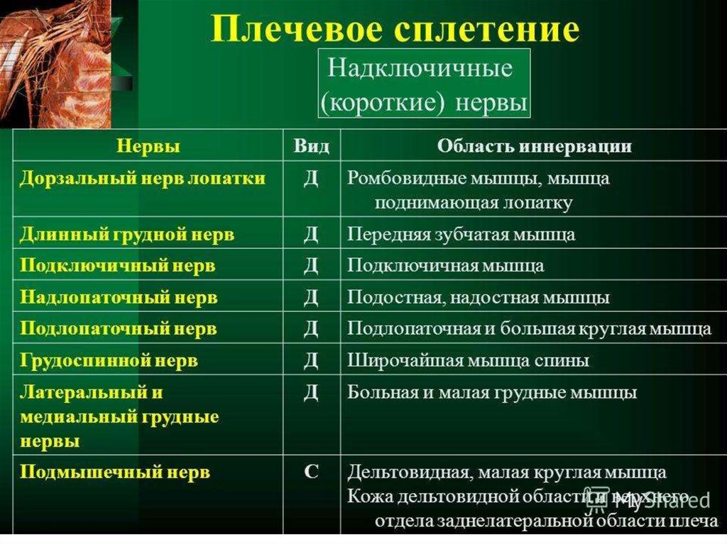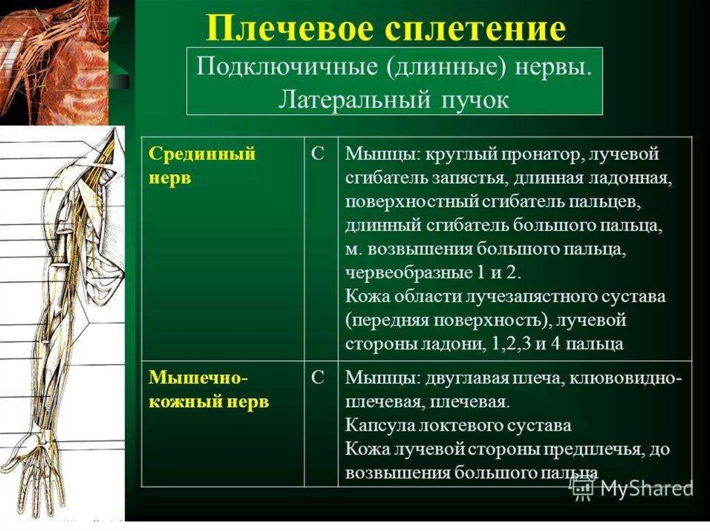 Длинные ветви плечевого сплетения отходят отего подключичной части и иннервируют