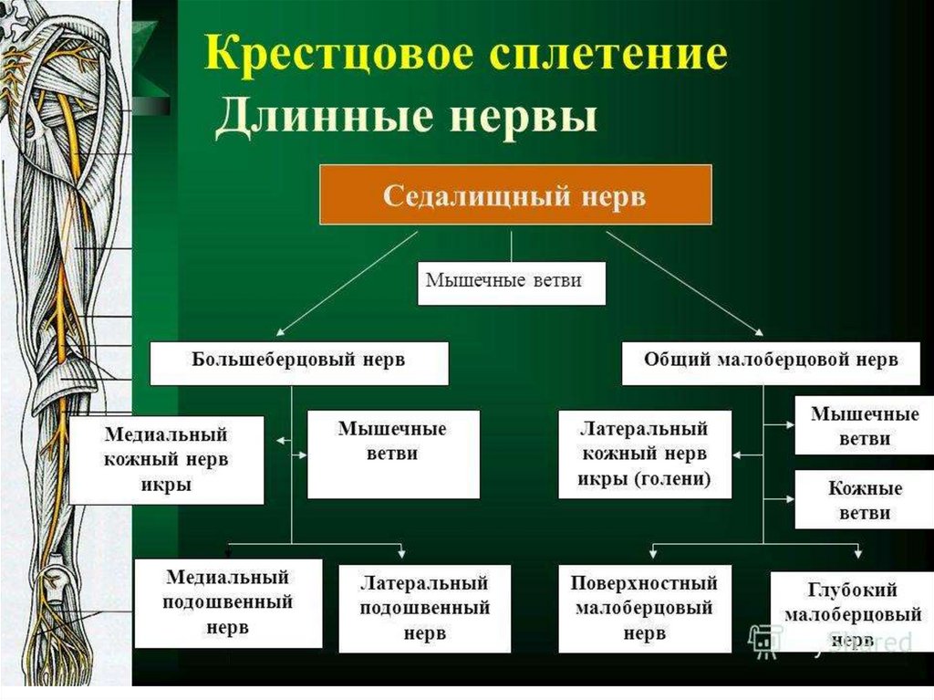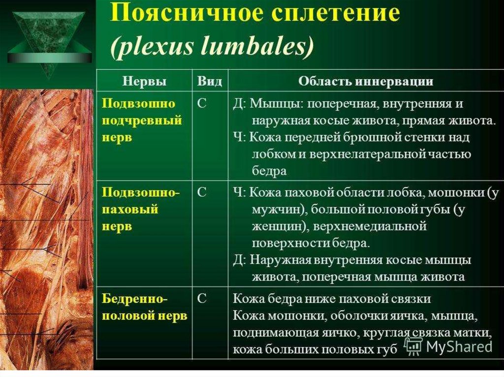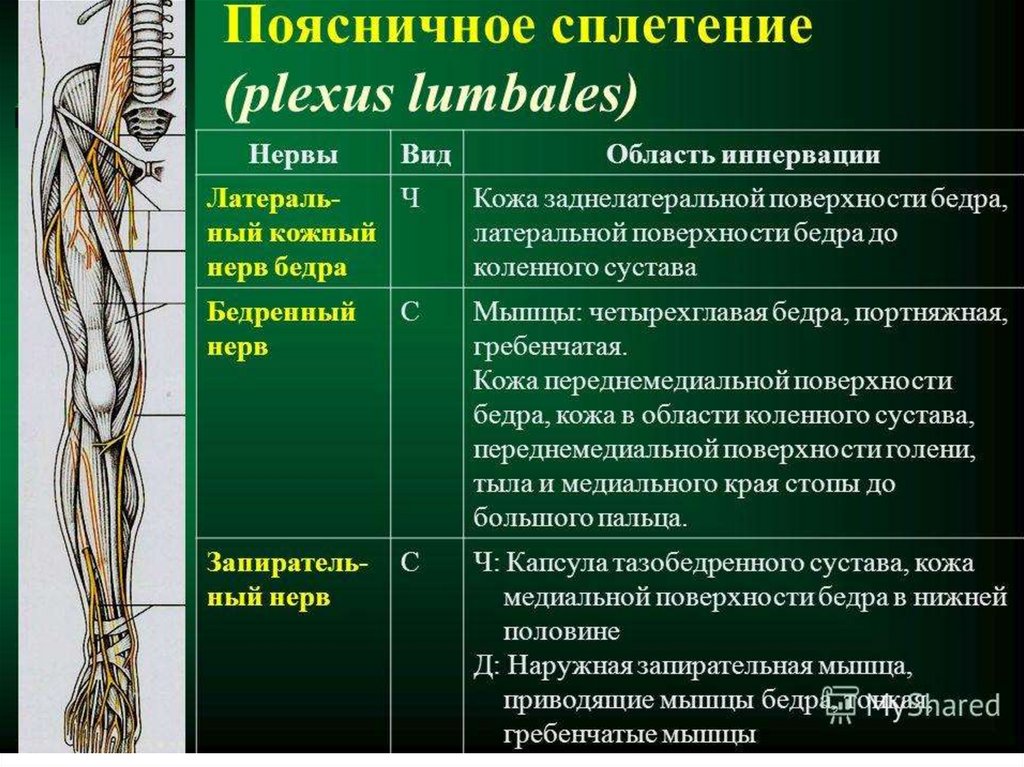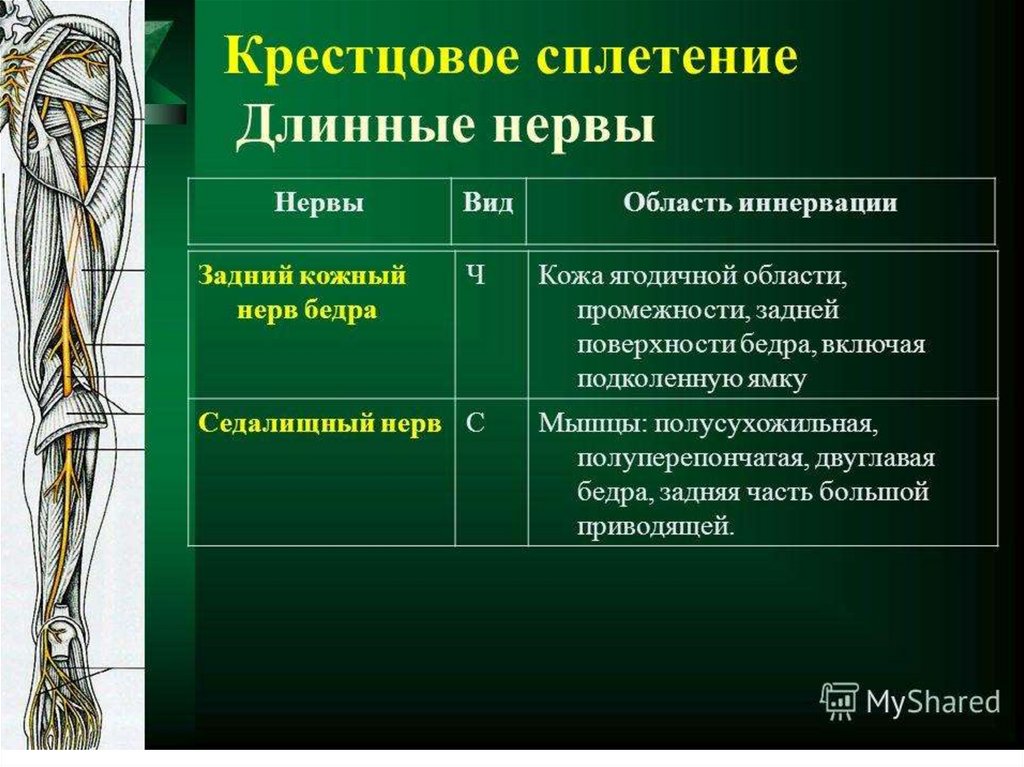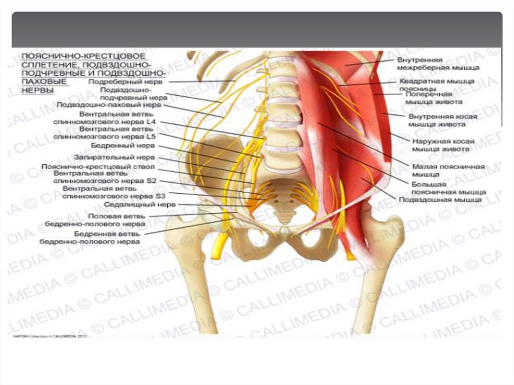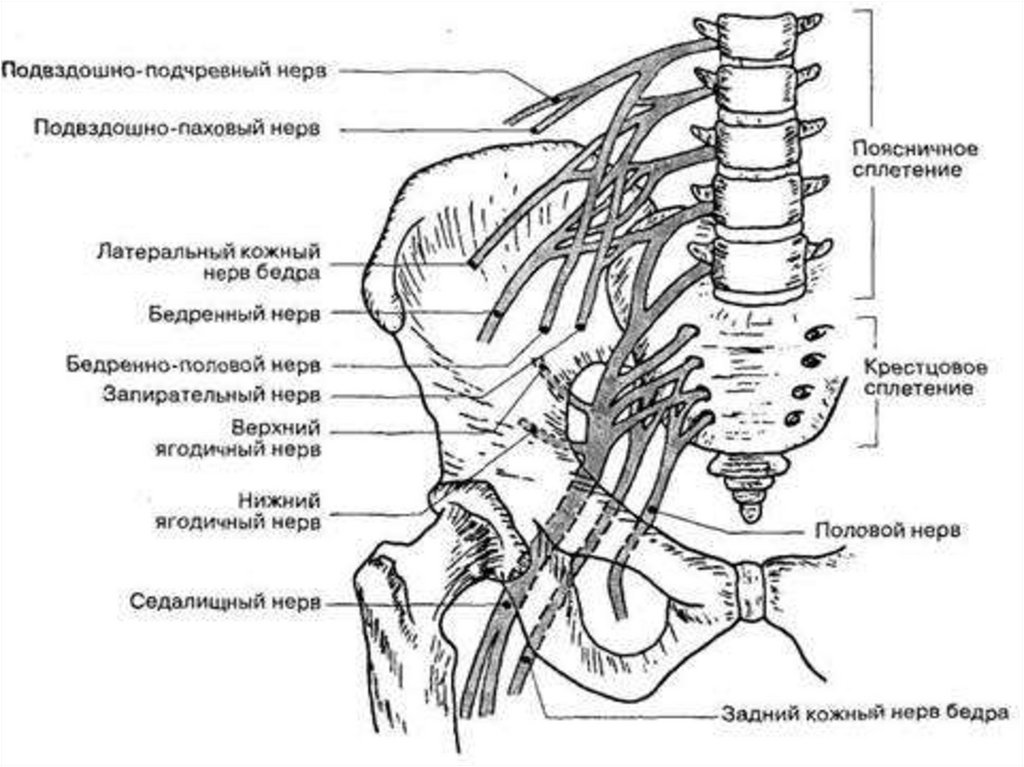 Подвздошно-подчревный нерв – иннервирует кожу и мышцыживота, а также кожу ягодиц и верхней части бедра.