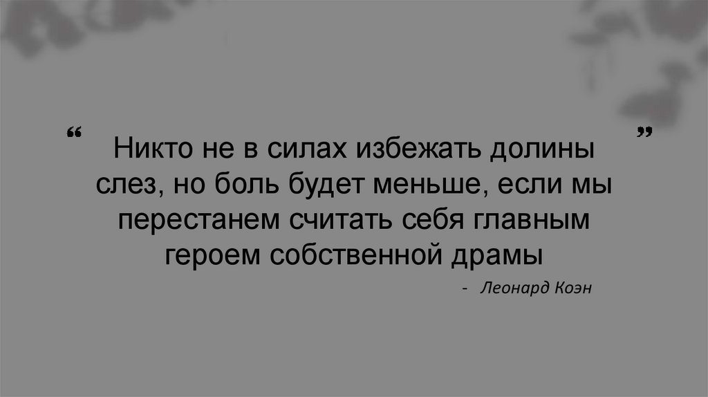 Никто не в силах избежать долиныслез, но боль будет меньше, если мы