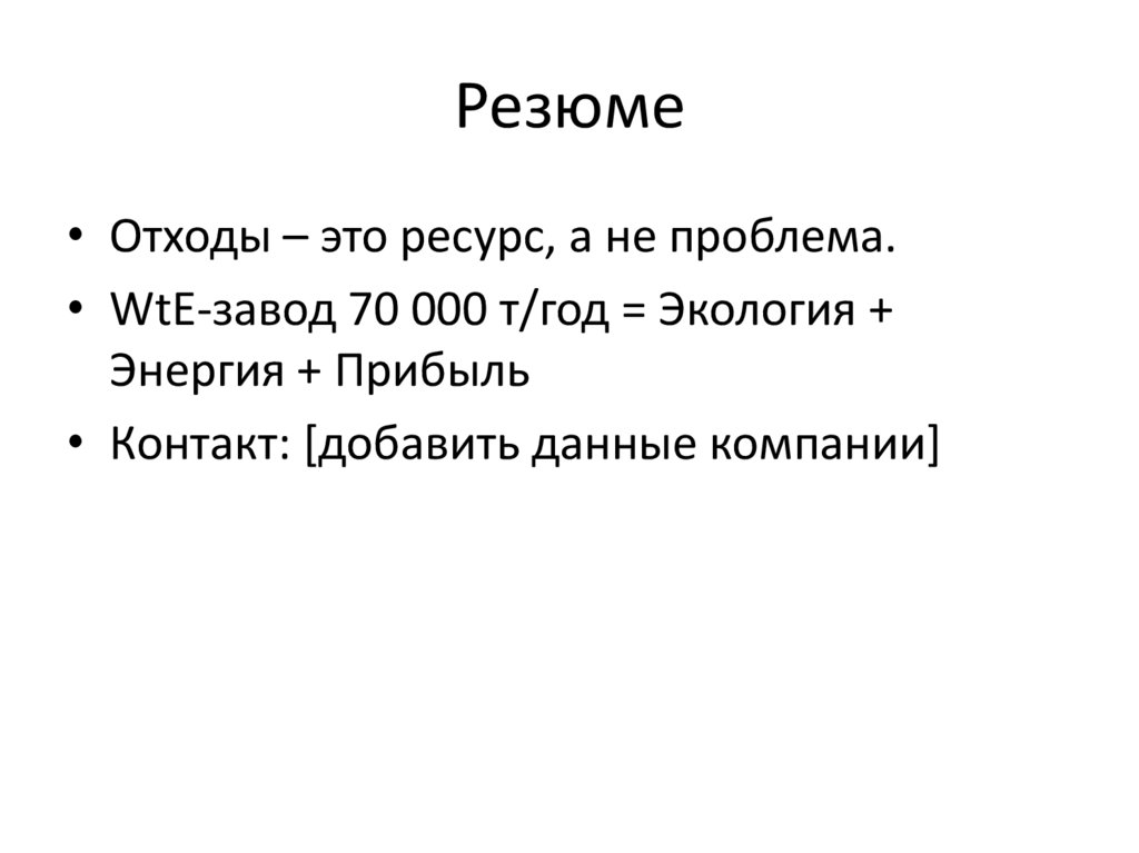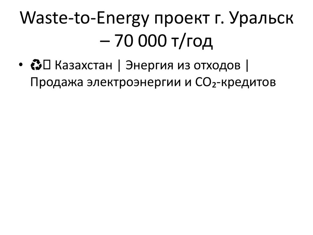 Waste-to-Energy проект г. Уральск– 70 000 т/год