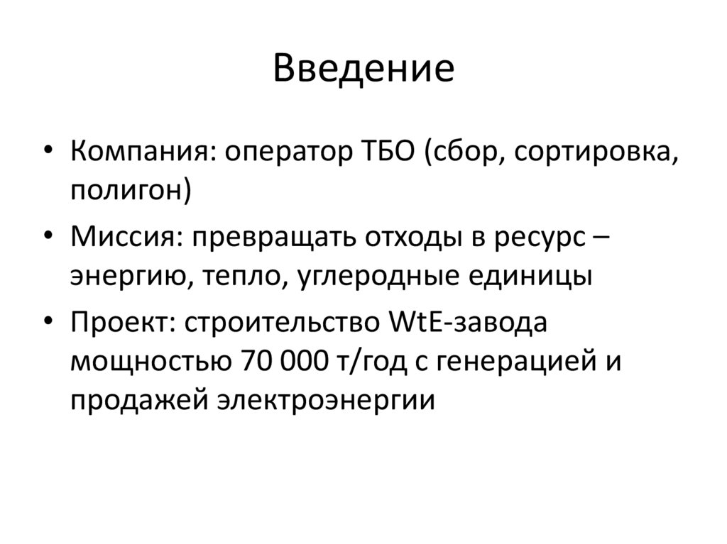 Введение• Компания: оператор ТБО (сбор, сортировка,