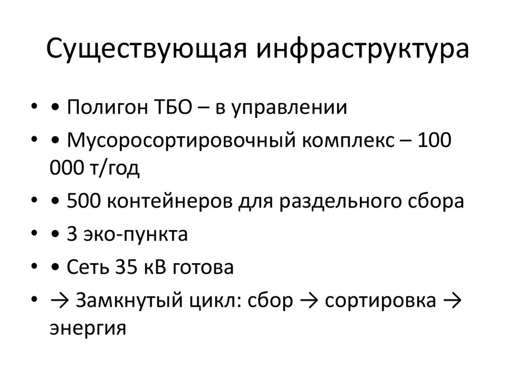 Существующая инфраструктура• • Полигон ТБО – в управлении
