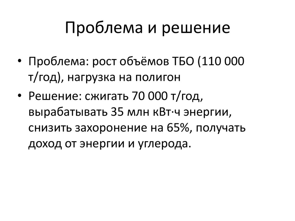 Проблема и решение• Проблема: рост объёмов ТБО (110 000