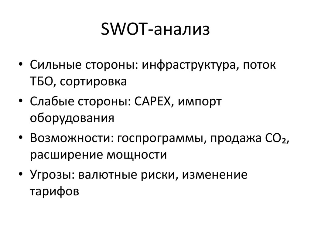 SWOT-анализ• Сильные стороны: инфраструктура, поток