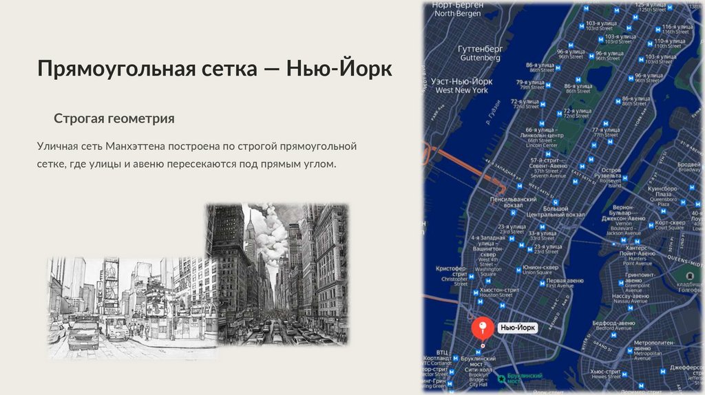Уличная сеть Манхэттена построена по строгой прямоугольной