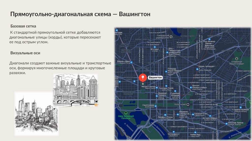 Прямоугольно-диагональная схема — ВашингтонБазовая сетка