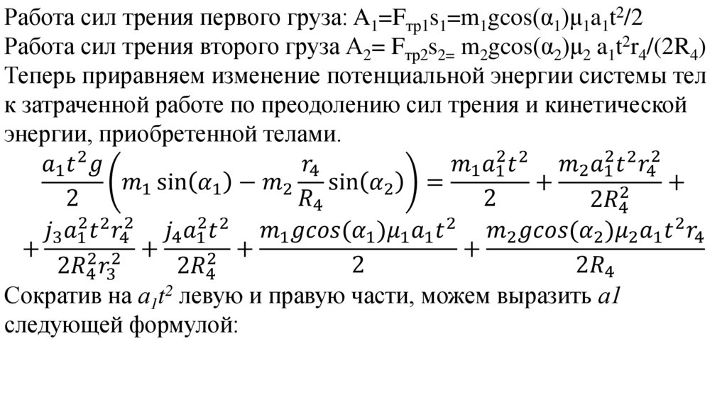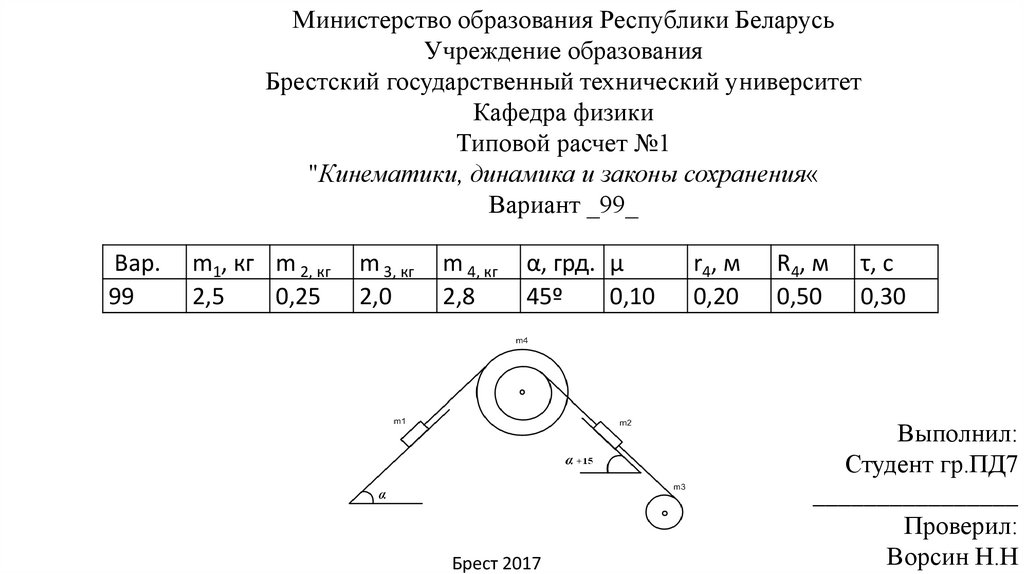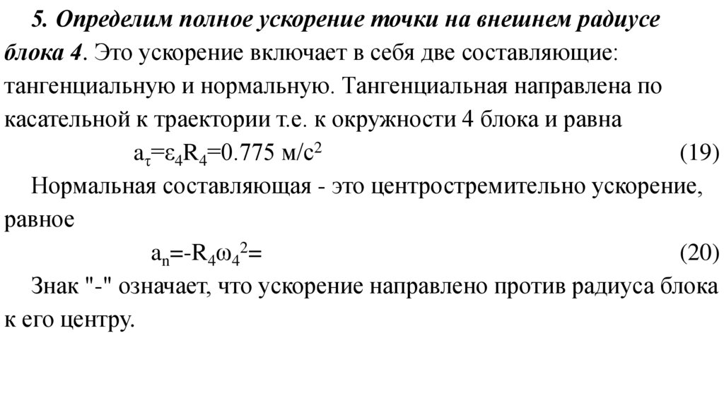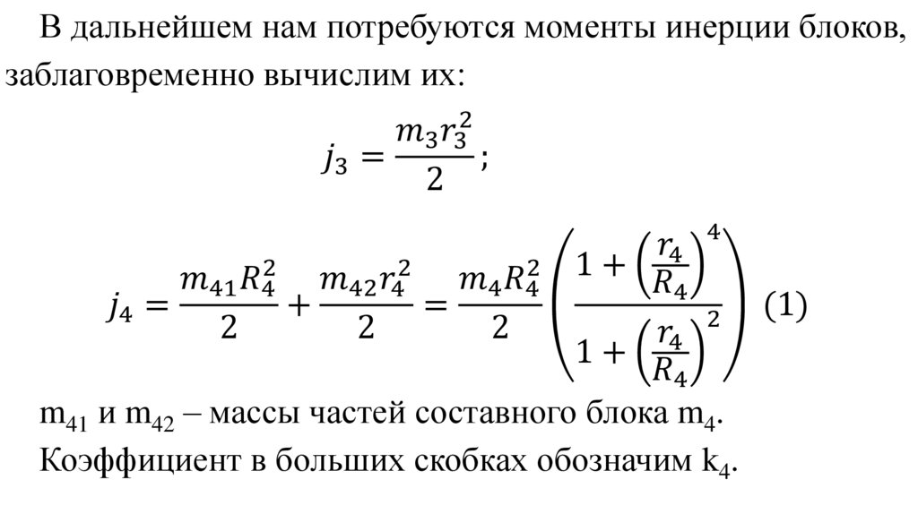 внешнем радиусе блока m4 спустя время τ после начала движения по