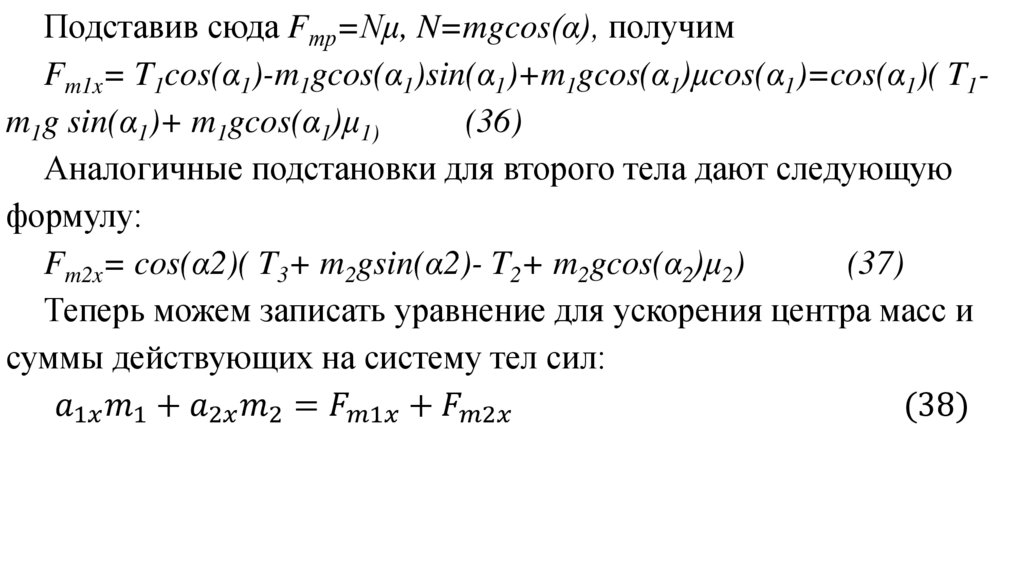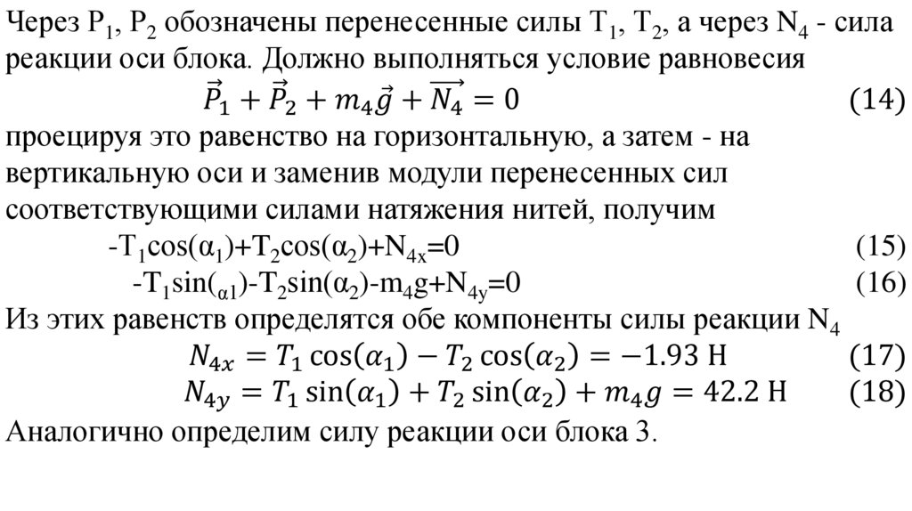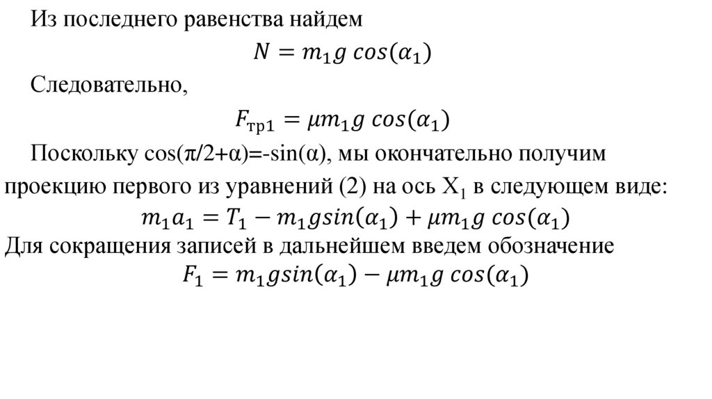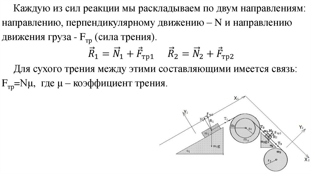 Каждую из сил реакции мы раскладываем по двум направлениям:направлению, перпендикулярному движению – N и направлению