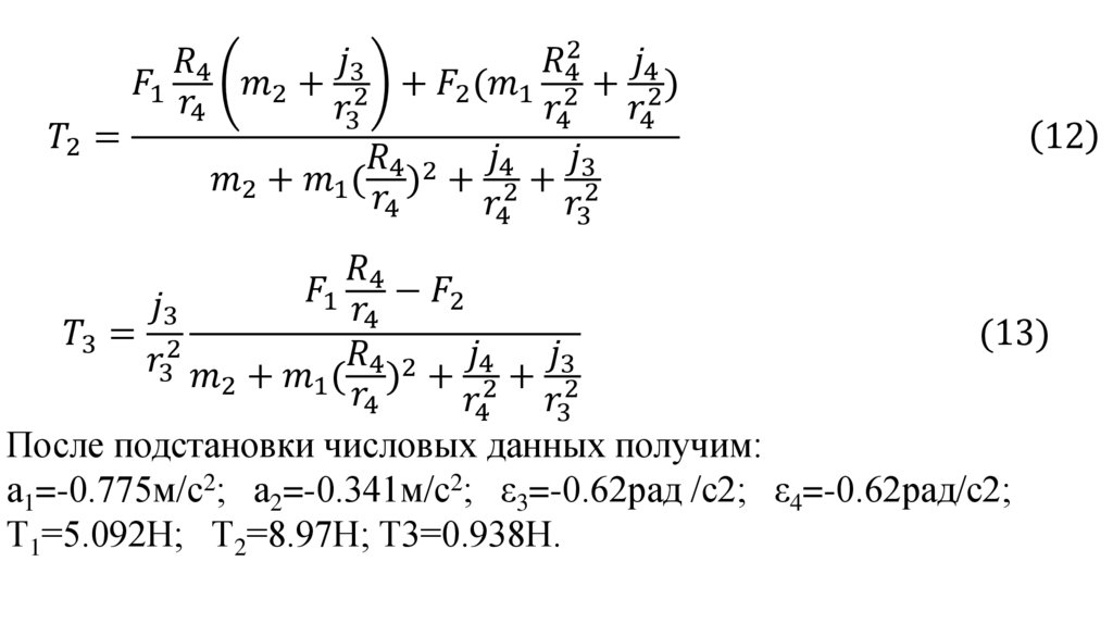 m2=0,80кг; m4=3,4кг; r3=0.55 м; r4=0,55м;