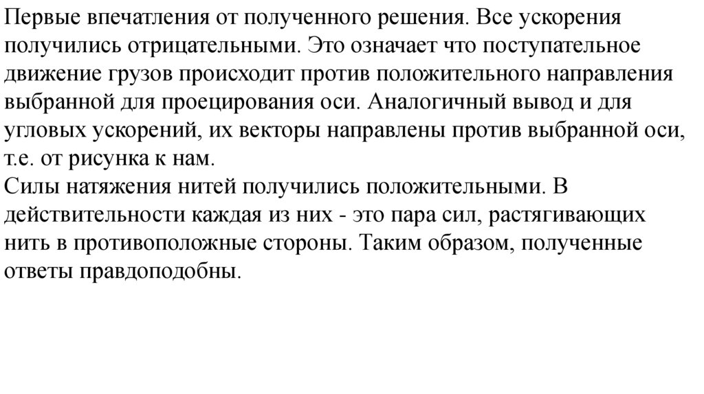Пункты 1, 2. Изобразим векторы сил, приложенных к грузам. К