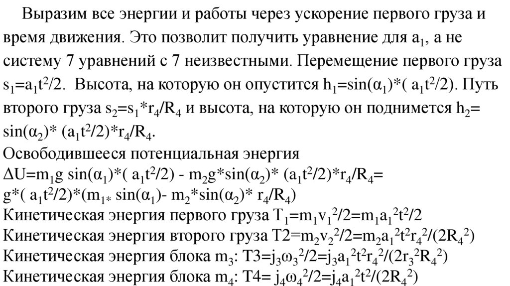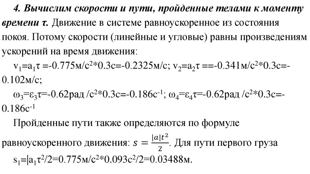 способом ускорения, скорости грузов, угловые ускорения и скорости