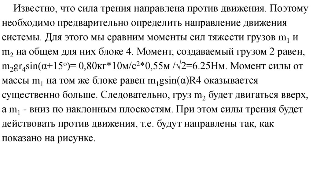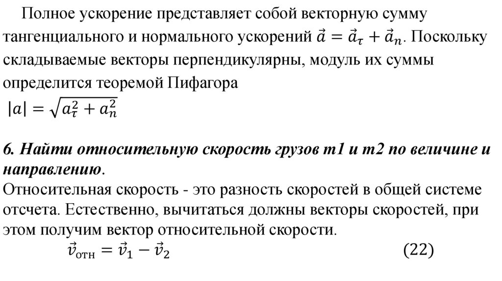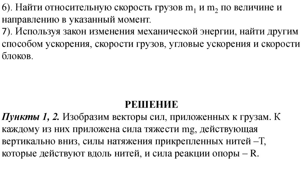 6). Найти относительную скорость грузов m1 и m2 по величине инаправлению в указанный момент.