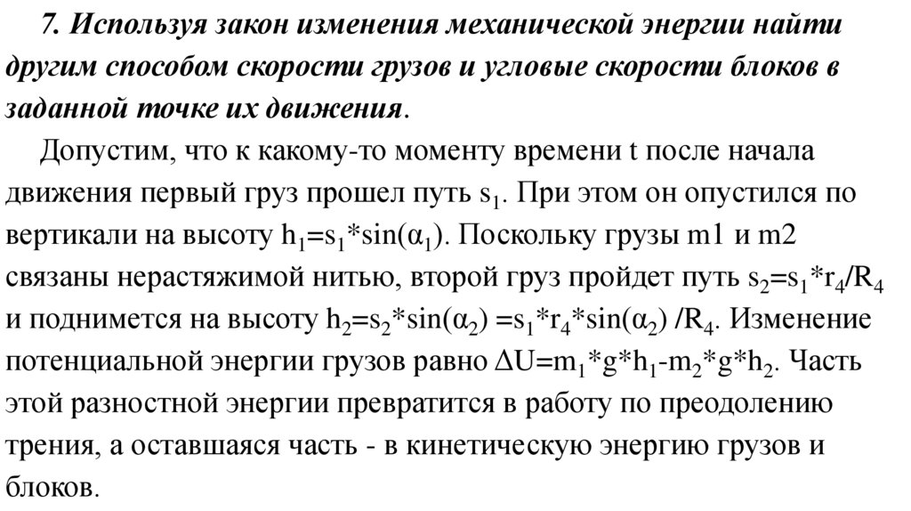 4). Найти скорости грузов, угловые скорости блоков и пути,