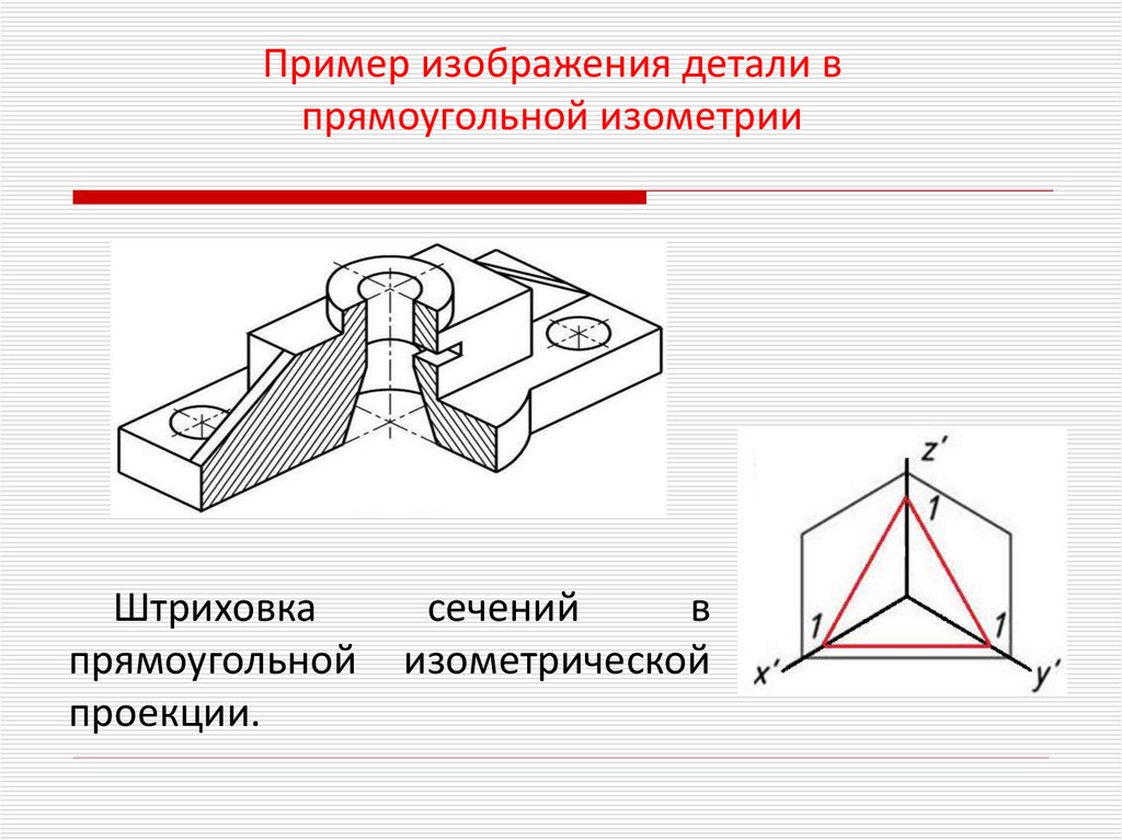 Пример изображения детали впрямоугольной изометрии
