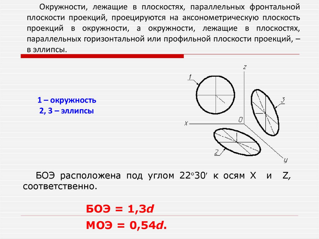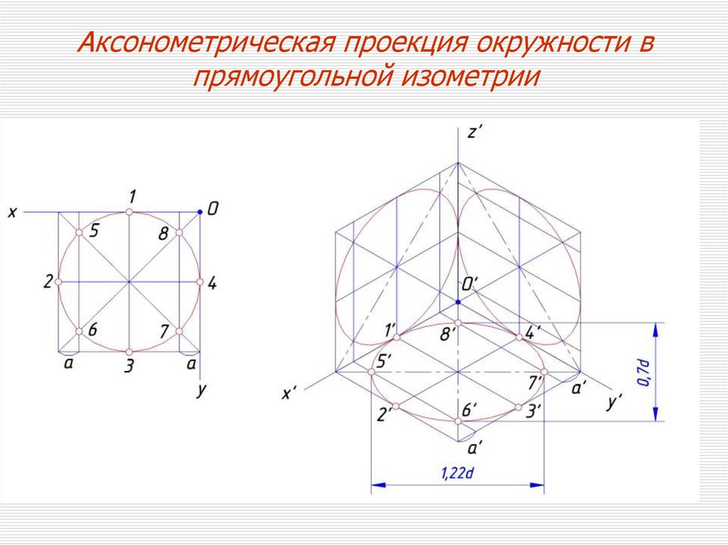 Аксонометрическая проекция окружности впрямоугольной изометрии