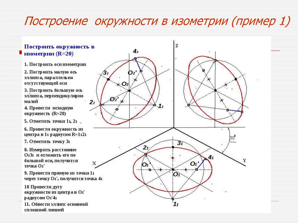 Построение окружности в прямоугольнойизометрии