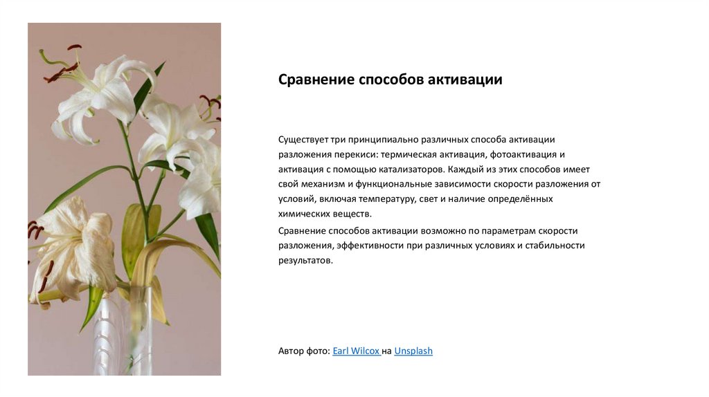 разложения перекиси: термическая активация, фотоактивация и