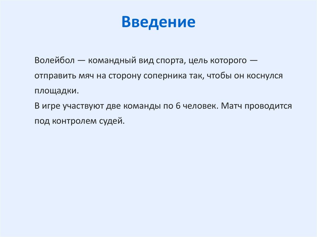 ВведениеВолейбол — командный вид спорта, цель которого —