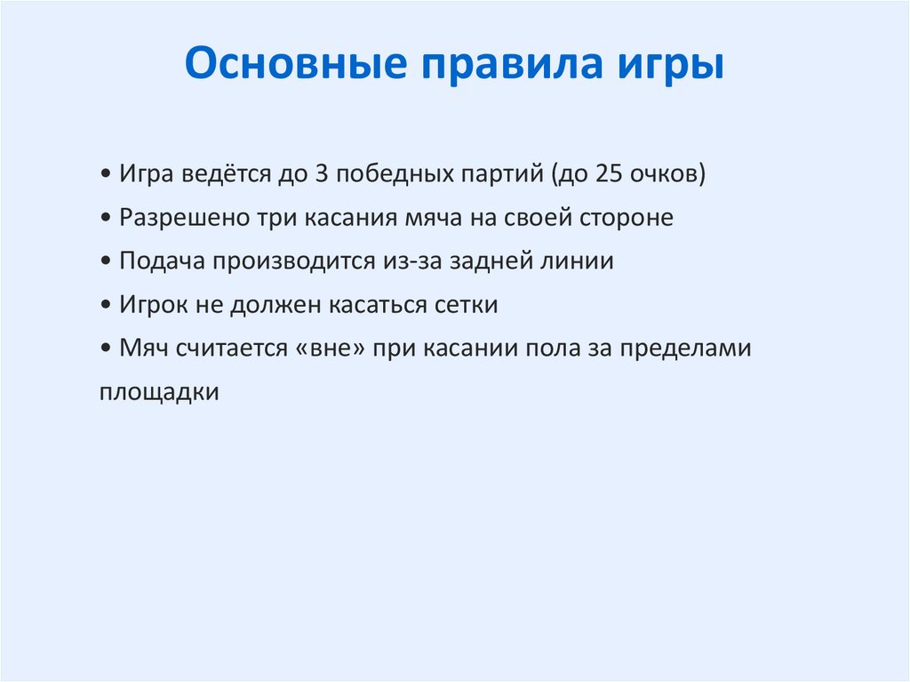 Основные правила игры• Игра ведётся до 3 победных партий (до 25 очков)