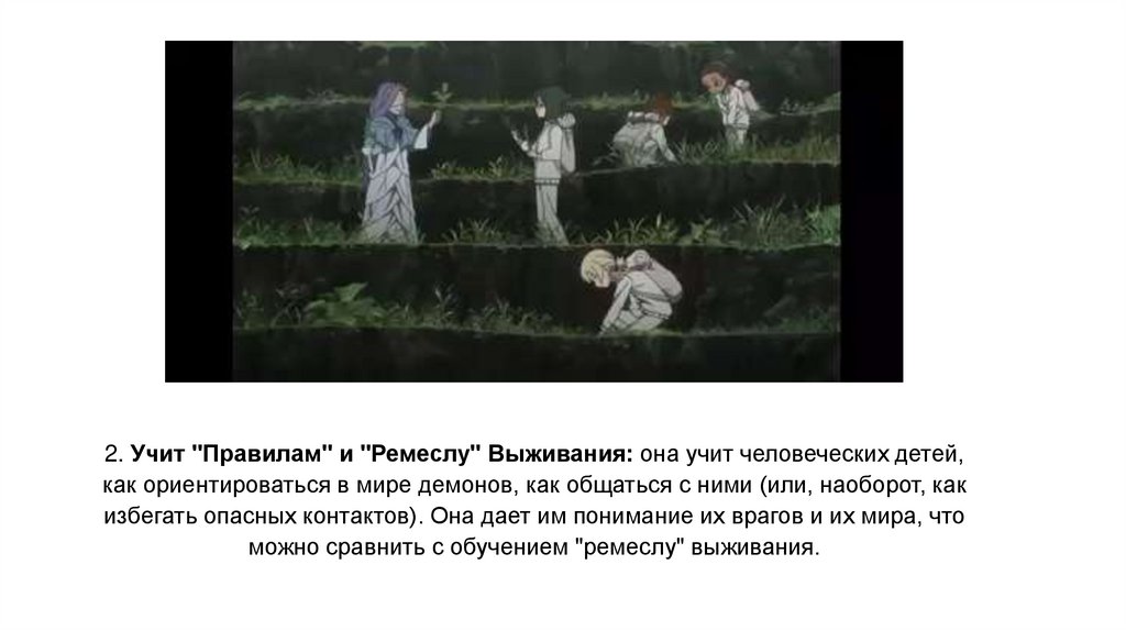 2. Учит "Правилам" и "Ремеслу" Выживания: она учит человеческих детей,как ориентироваться в мире демонов, как общаться с ними (или, наоборот, как
