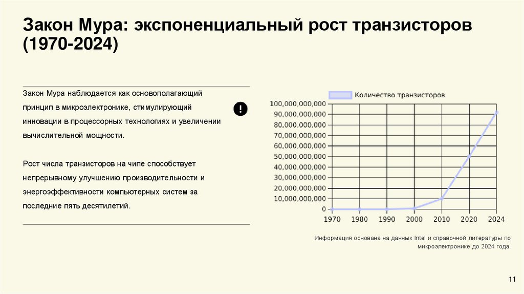 Закон Мура: экспоненциальный рост транзисторов(1970-2024)