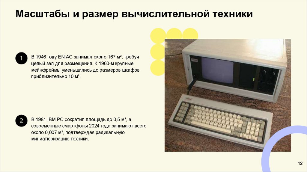 Масштабы и размер вычислительной техникиВ 1946 году ENIAC занимал около 167 м², требуя