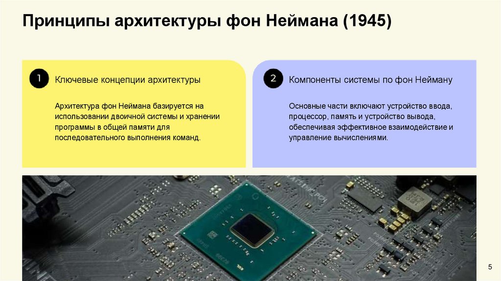 Принципы архитектуры фон Неймана (1945)Ключевые концепции архитектуры