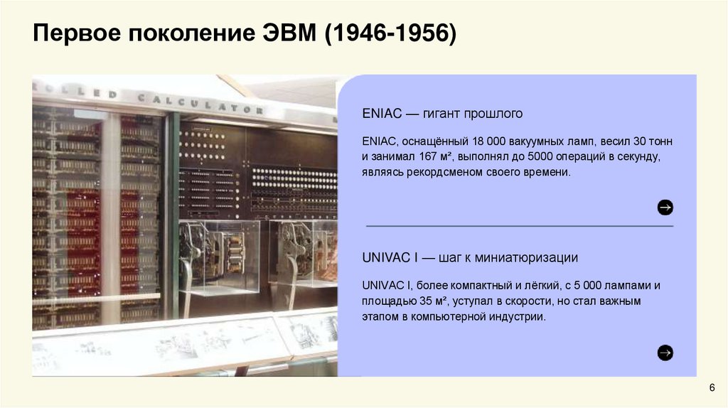 Первое поколение ЭВМ (1946-1956)ENIAC — гигант прошлого