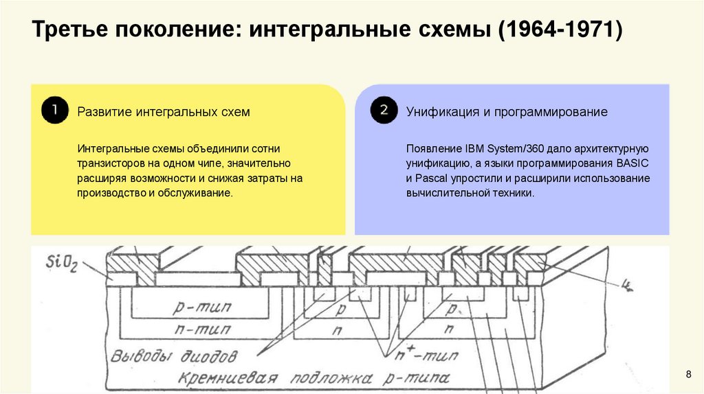 Третье поколение: интегральные схемы (1964-1971)Развитие интегральных схем
