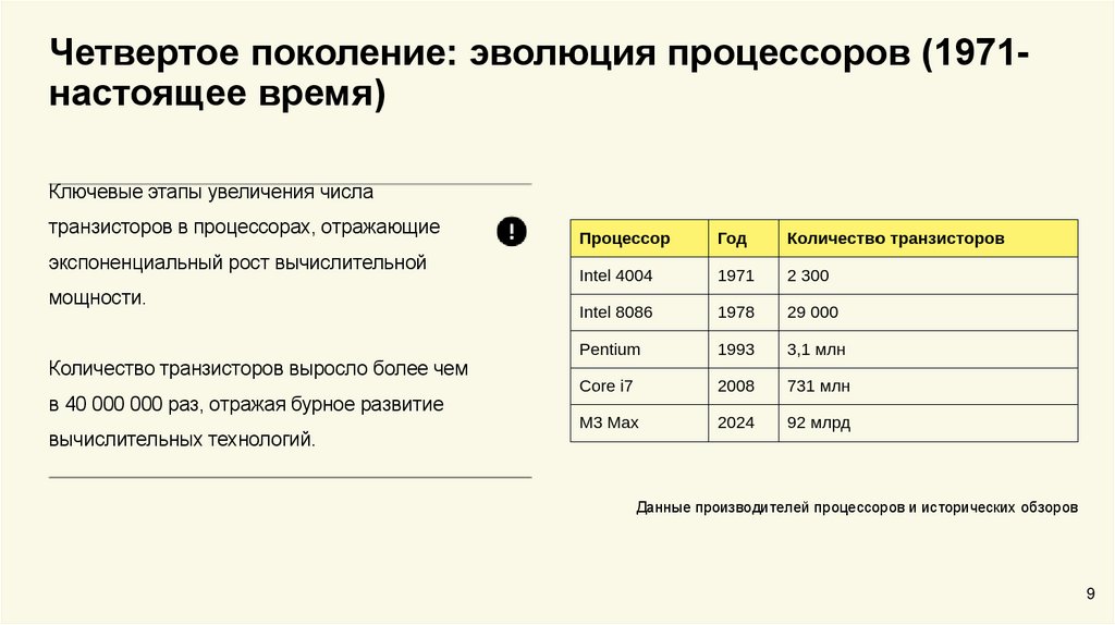 Четвертое поколение: эволюция процессоров (1971настоящее время)Ключевые этапы увеличения числа