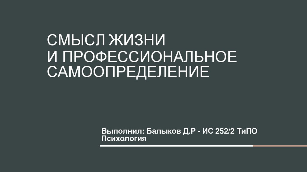 СМЫСЛ ЖИЗНИИ ПРОФЕССИОНАЛЬНОЕ