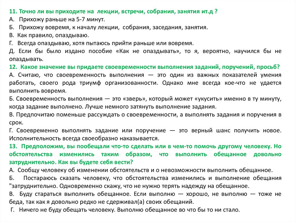 3. Когда у вас случаются неприятности, вы: а) откладываете их устранение на последний момент;
