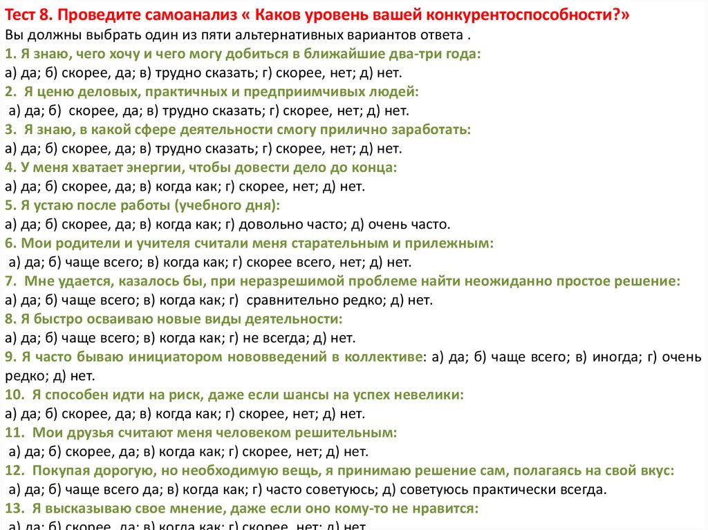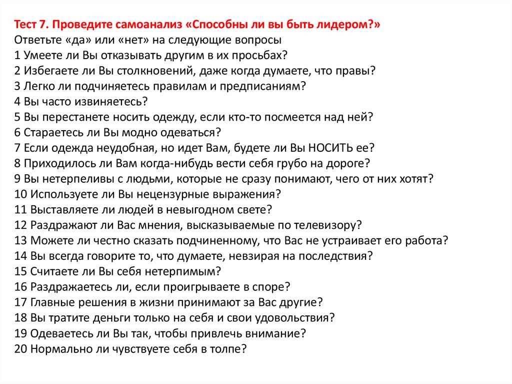 а) да; б) нет; в) лишь в некоторой степени.