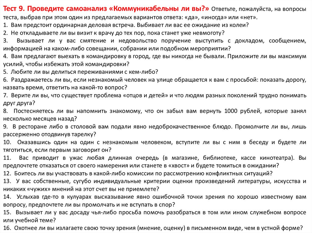 9. Когда вы с кем-то разговариваете, то: а) время от времени отводите взгляд;