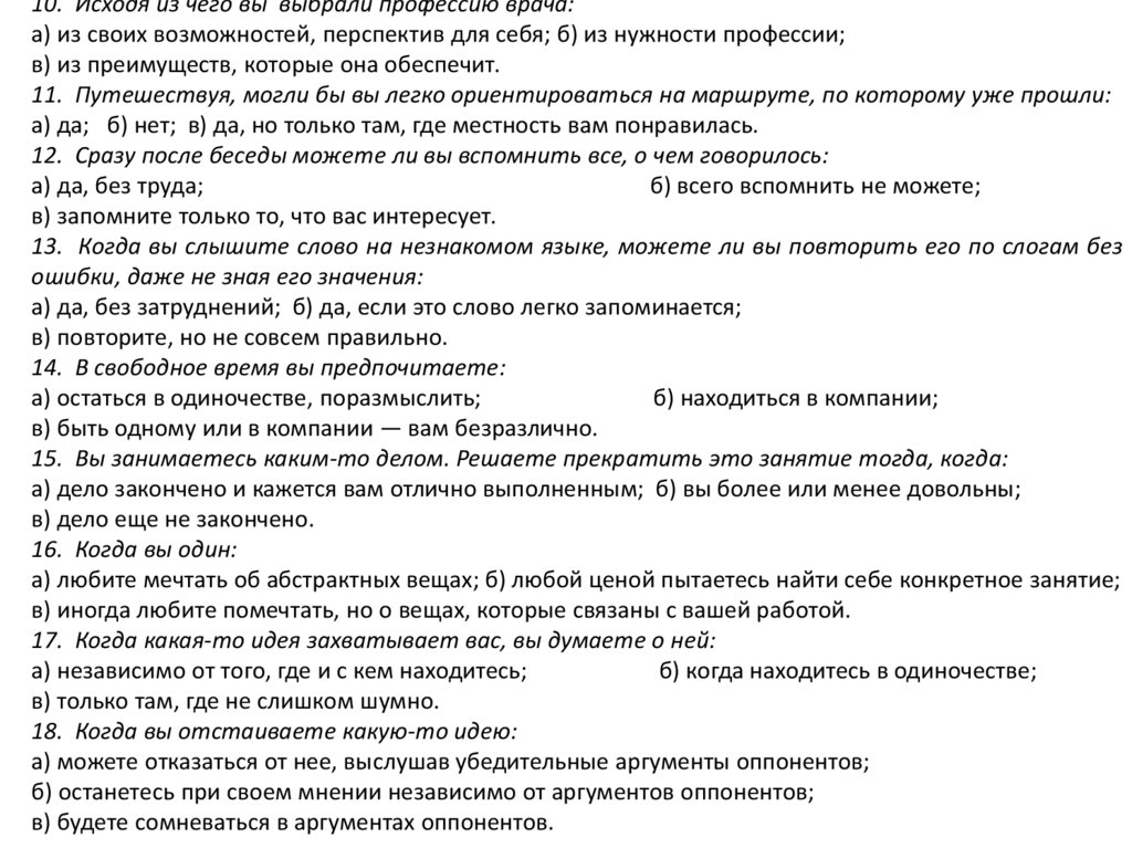 10. Исходя из чего вы выбрали профессию врача:а) из своих возможностей, перспектив для себя; б) из нужности профессии;