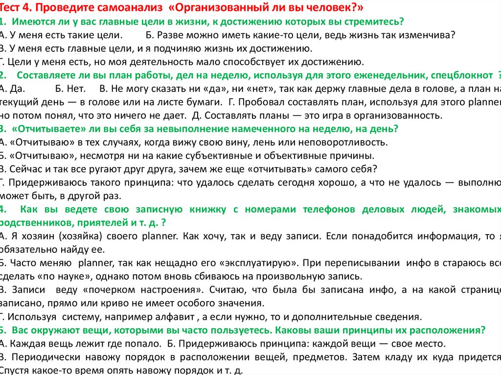 4. Вы не успели вовремя сделать какую-то работу и: а) основательно подготавливаете