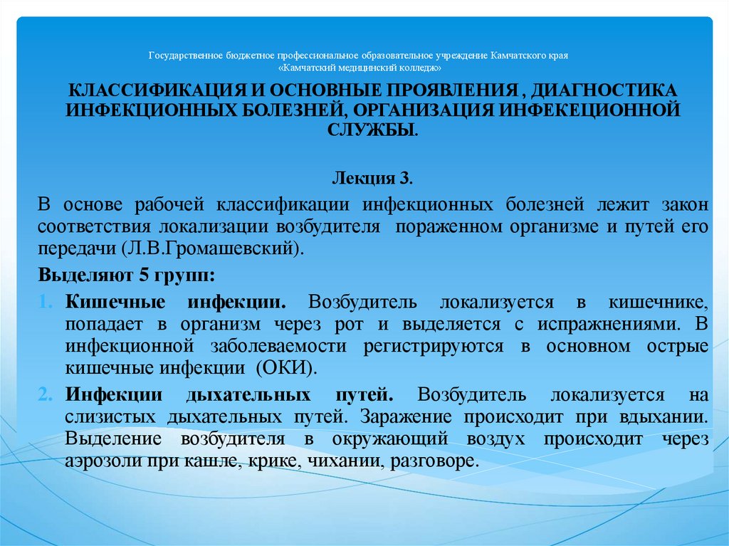 КЛАССИФИКАЦИЯ И ОСНОВНЫЕ ПРОЯВЛЕНИЯ , ДИАГНОСТИКАИНФЕКЦИОННЫХ БОЛЕЗНЕЙ, ОРГАНИЗАЦИЯ ИНФЕКЕЦИОННОЙ