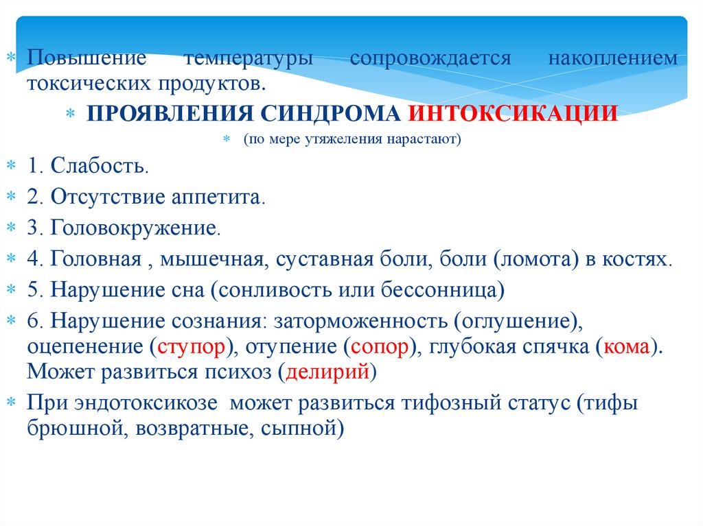 1. ЛИХОРАДОЧНО-ИНТОКСИКАЦИОННЫЙ СИНДРОМ.