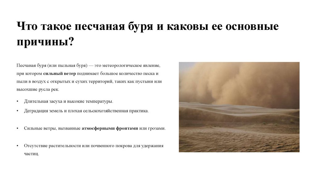 Песчаная буря (или пыльная буря) — это метеорологическое явление,