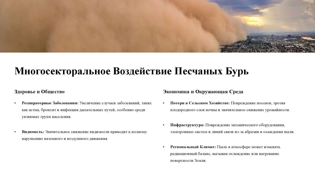 Многосекторальное Воздействие Песчаных БурьЗдоровье и Общество