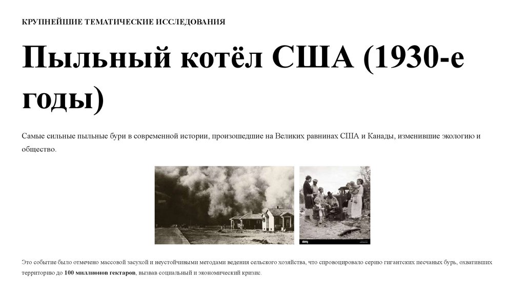 КРУПНЕЙШИЕ ТЕМАТИЧЕСКИЕ ИССЛЕДОВАНИЯПыльный котёл США (1930-е