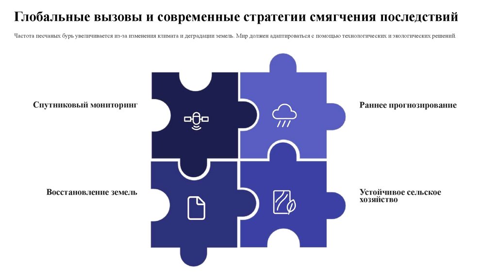 Глобальные вызовы и современные стратегии смягчения последствийЧастота песчаных бурь увеличивается из-за изменения климата и деградации земель. Мир должен адаптироваться с помощью технологических и экологических решений.