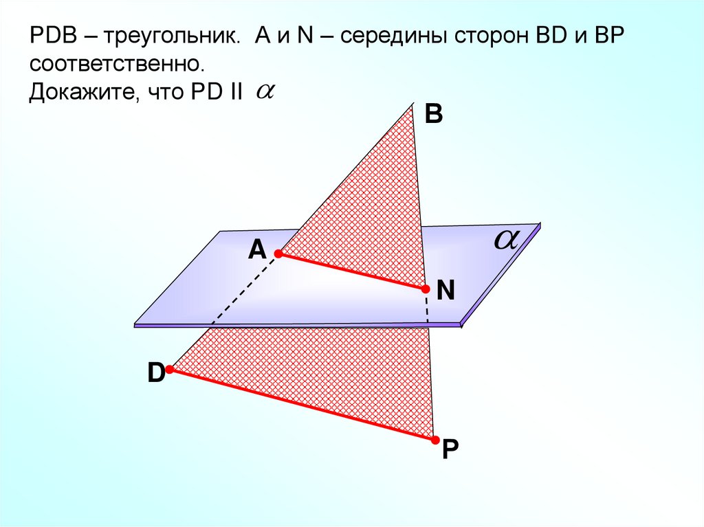 РDB – треугольник. А и N – середины сторон ВD и ВРсоответственно.